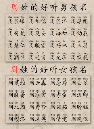 3. 追求音韵美学:周姓为阴平(第一声),搭配仄声字形成起伏,读来朗朗上口。